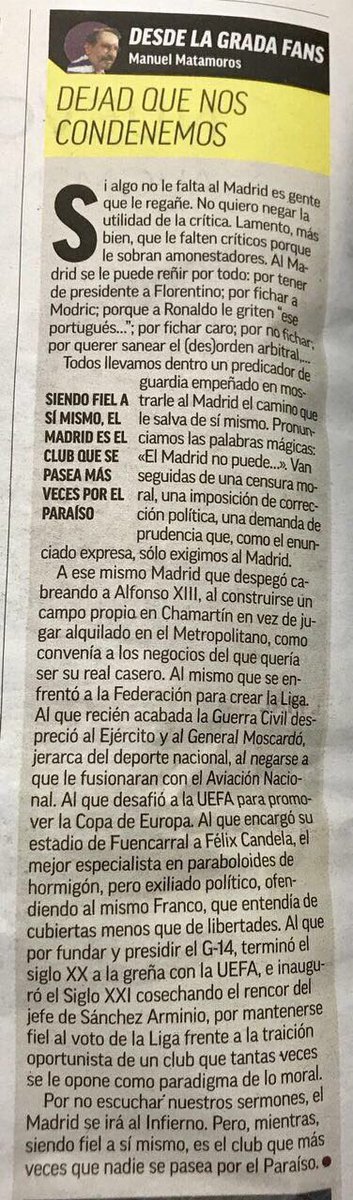 Nos vendría muy bien para la flor Zideniana que Carajal se lesionara otro tanto a ver si se le pasaba la tontería y podíamos ver a Nacho o a Achraf en el lateral. Peor no lo van a hacer en defensa y en ataque solo por el mero hecho de subir menos no estorbarán a los que saben.
