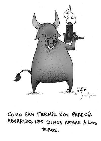 Me gusta que los mozos recen, calienten, se concentren, y en definitiva que tengan mucho respeto al toro. Aunque luego, los pobres, a tropezarse con los borrachos y los guiris.