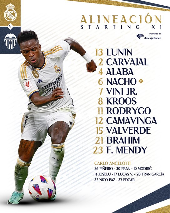 Vinicius, Rodrigo y Brahim. Jamás hubiera adivinado la alineación. Diría que me parece interesante, pero juega Kroos, así que me espero lo peor.